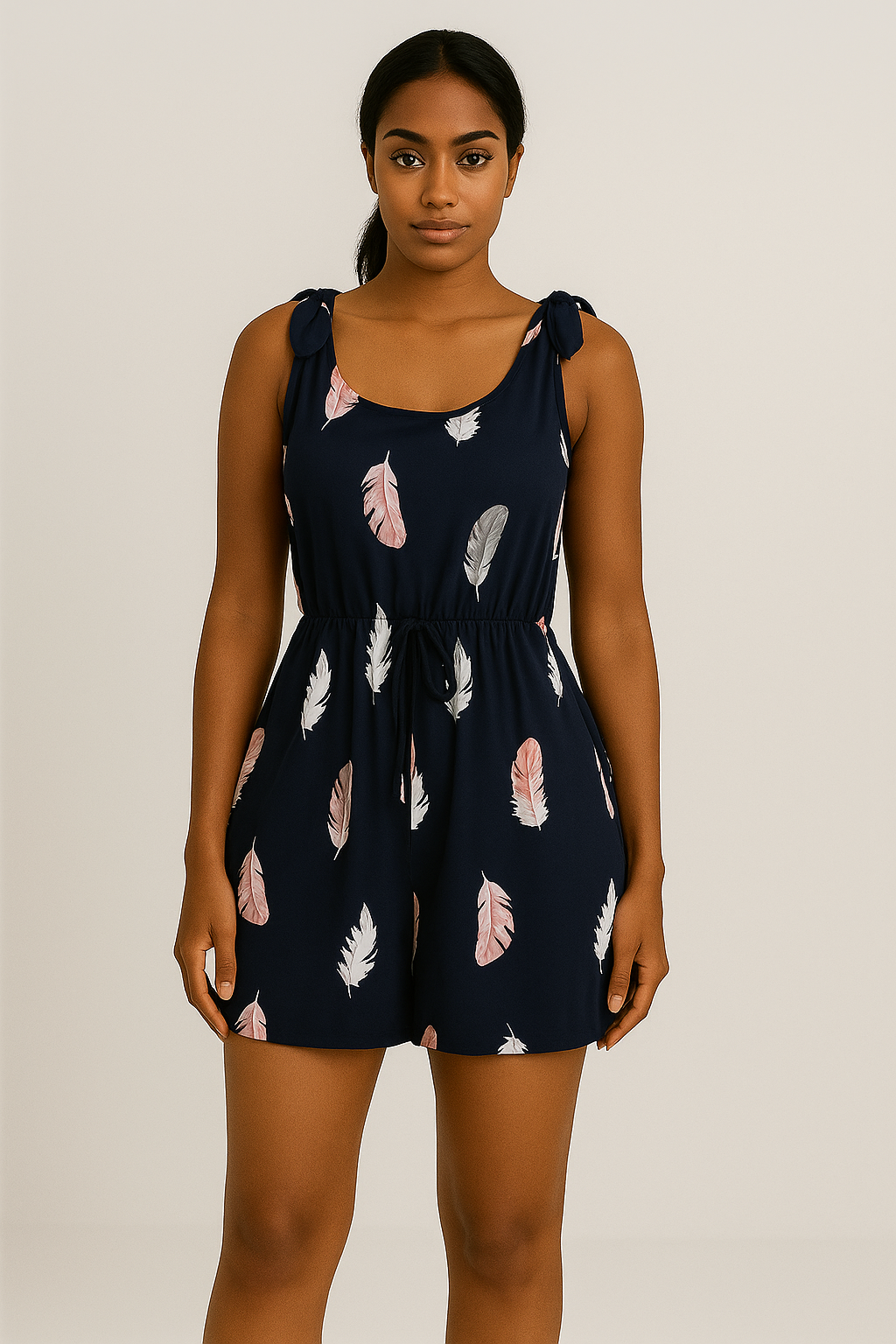 Combishort femme à imprimé plume et bretelles nouées