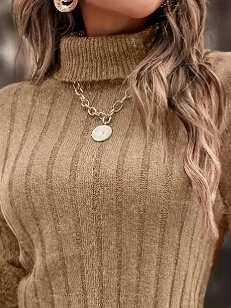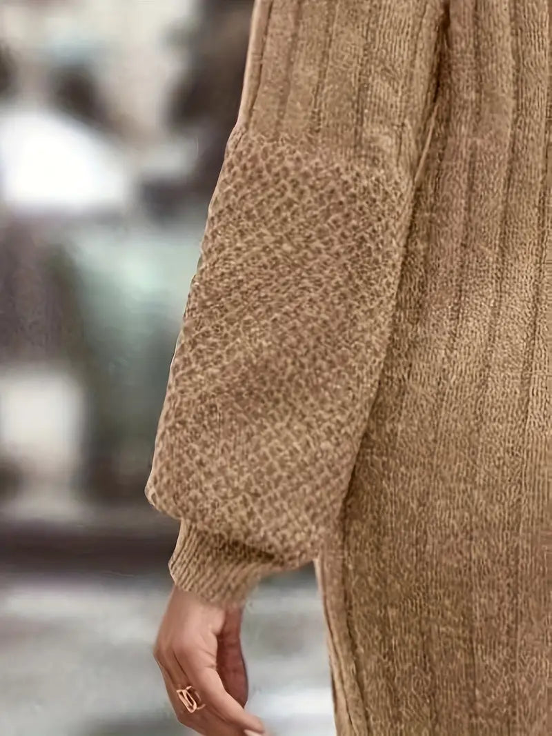 Robe Pull Tricoté Côtelé Uni Mi-long